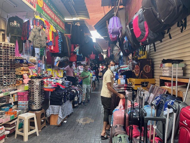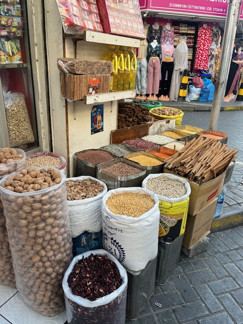 Naša zadnja destinacija pa je bila tržnica Bab Al Bahrain, kar pomeni Vrata Bahrajna. Nahaja se v središču glavnega mesta. Povsod diši po začimbah in kadilih, navdušile so nas tudi žive barve. Naši fantje so se za nekaj minut prelevili v prave Arabce, saj so si nadeli tipične arabske bele obleke, imenovane gundure ali gilbani, in naglavne rute. Nekateri so si celotno opravo za 12 bahrajnskih dinarjev (en BHD je približno 2,4 evra) celo kupili. Profesorji pa smo na bazarju kupili začimbe in oreščke, nato pa smo se odpravili proti hotelu.