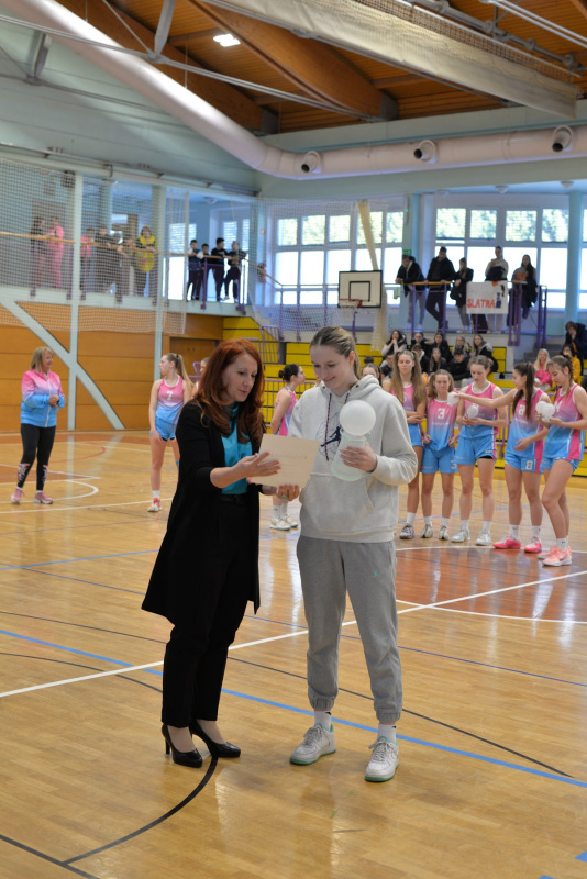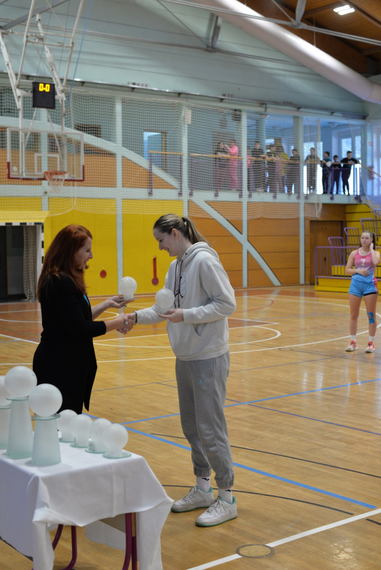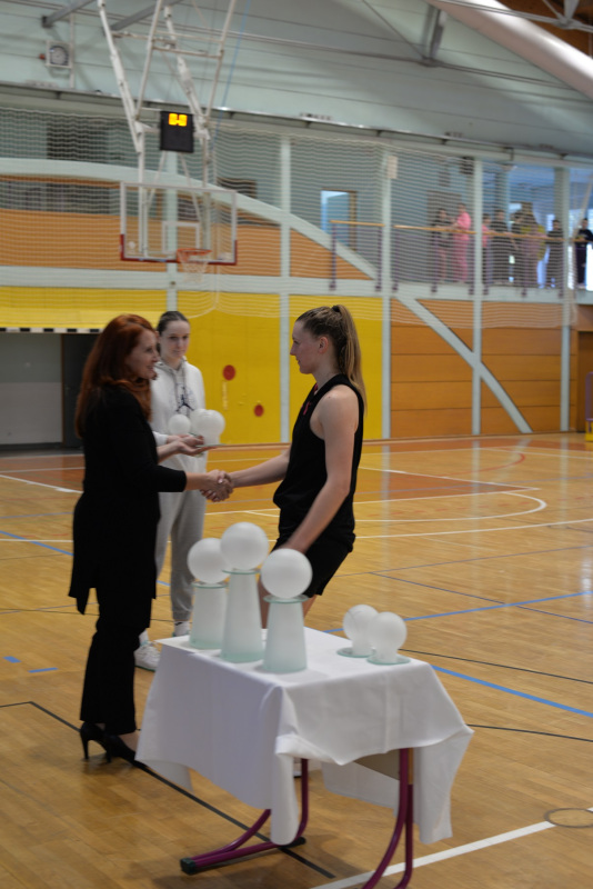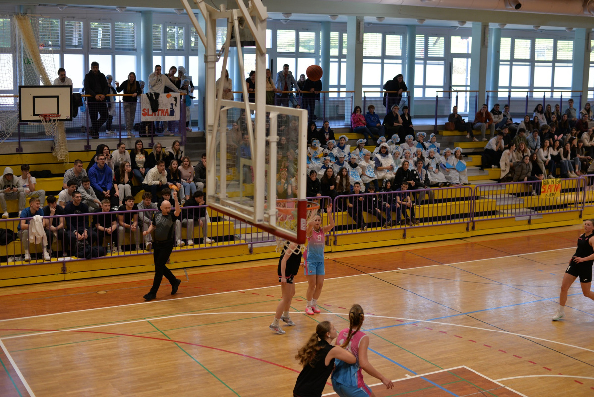 V torek, 4. 3. 2025, se je v naši domači dvorani Janina odvil državni polfinale v košarki za dijakinje. Sodelovale so tri šole: Šolski center Rogaška Slatina, I. gimnazija v Celju (Kajuh) ter Ekonomska šola Celje. Tekmovanje so otvorile domačinke ter dijakinje EŠC. Hitro je postalo jasno, da ekonomke niso kos našim košarkaricam. Na prvi tekmi je blestela naša Lana Kobilšek, ki je zadela kar šest metov za tri točke. Rezultat na semaforju je na koncu kazal 88 : 42 v korist Slatn’čank. Druga in za gledalce še najzanimivejša tekma med ekonomkami in dijakinjami “Kajuha” je bila napeta do zadnjih sekund, po enem podaljšku pa so se zmage veselile dijakinje I. gimnazije. Vsi smo bili na trnih pred finalno tekmo, vendar so naše punce to nervoznost kmalu odpravile. Vodila jih je Tjaša Turnšek, ki je tekmo končala s 30 točkami, punce pa so tudi presegle 100 točk. Tako je ob zvoku sirene rezultat kazal 102 : 47.