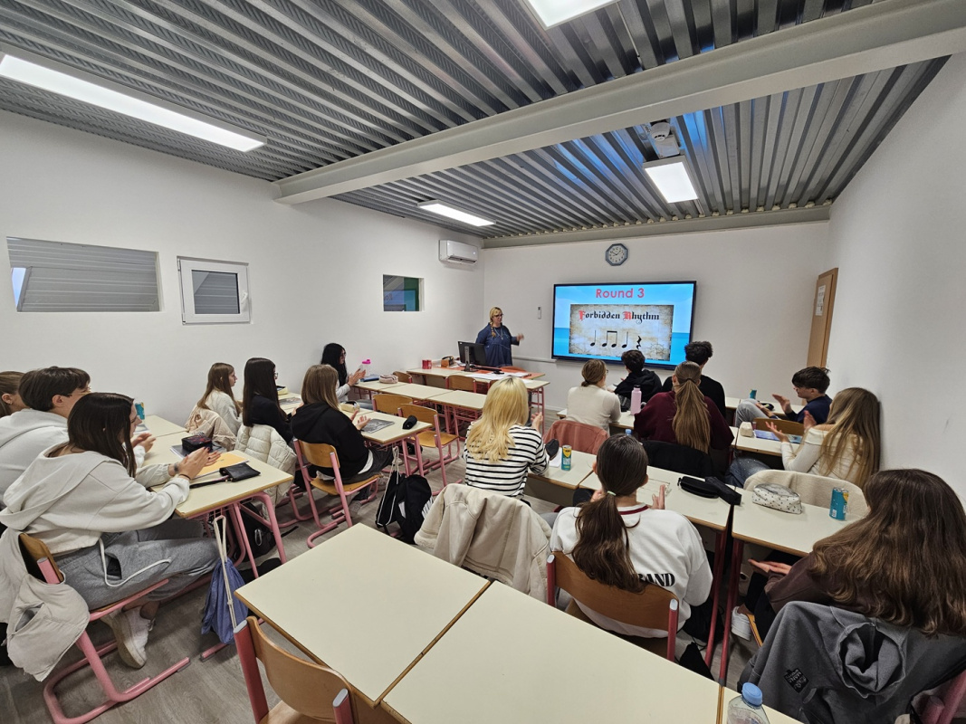 Na primeru sodobnih slovenskih skladb smo preverjali svoje znanje literarne teorije, natančneje slogovnih sredstev, pri glasbi pa smo ugotavljali ritem in na koncu uporabili tudi body percussion.
