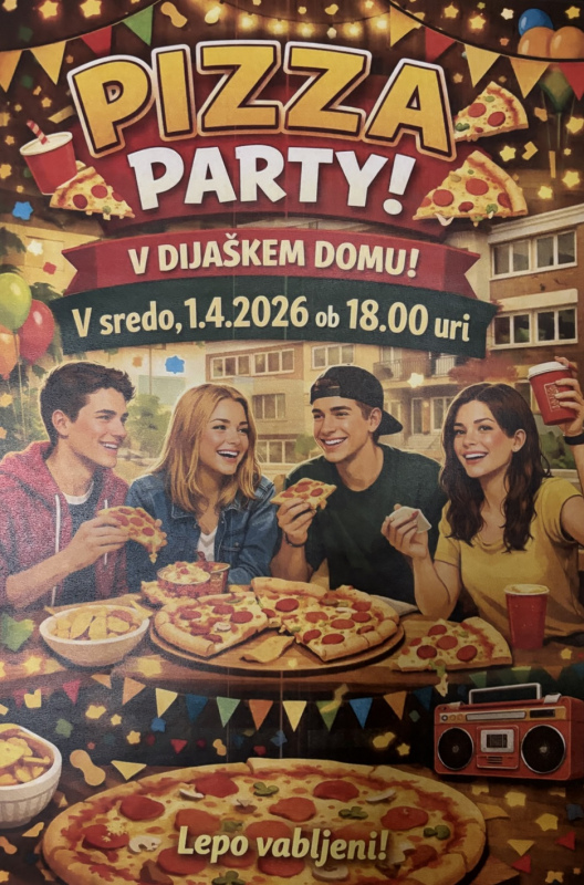 V sredo, 1. aprila 2026, je v Dijaškem domu zadišalo po sveže pečenih picah! Dijakinje prvega letnika smo pod vodstvom mentorice Branke Kovačič pripravile prav poseben večer, poln okusov in dobre volje. Za vse dijake smo spekle in postregle odlične pice različnih okusov, ki so navdušile naše brbončice. Druženje ob okusni hrani je ustvarilo prijetno vzdušje, ob katerem smo se zabavali in uživali.